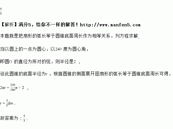 一个圆柱形容器的底面直径为,要把一块圆心角为的扇形铁板做一个圆锥形的盖子,做成的盖子要能盖住圆柱形容器顶部,这个圆锥底面半径至少要有________.