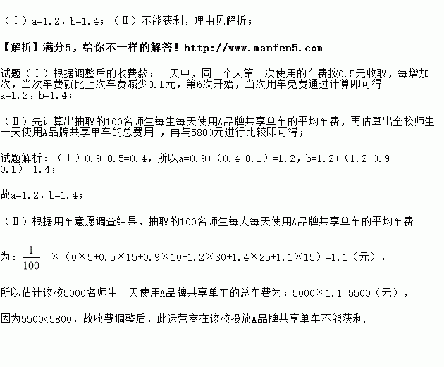 (Ⅱ)已知该校有5000名师生,且A品牌共享单车投放该校一天的费用为5800元.试估计:收费调整后,此运营商在该校投放A品牌共享单车能否获利? 说明理由.