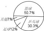 11、体育委员统计出班上喜欢足球的同学占12%,喜欢乒乓球的同学占30.3%,喜欢篮球的同学占50.7%,喜欢其他球类的同学占7%,问:能否制作扇形统计图?若能,请作出;若不能,请说明理由.
