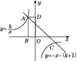 如图,矩形ABOD的顶点A是函数y=-x-(k+1)的图象与函数y=在第二象限的图象的交点,B,D两点在坐标轴上,且矩形ABOD的面积为3.