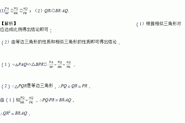 如图所示,△PQR是等边三角形,△PAQ∽△BPR.
