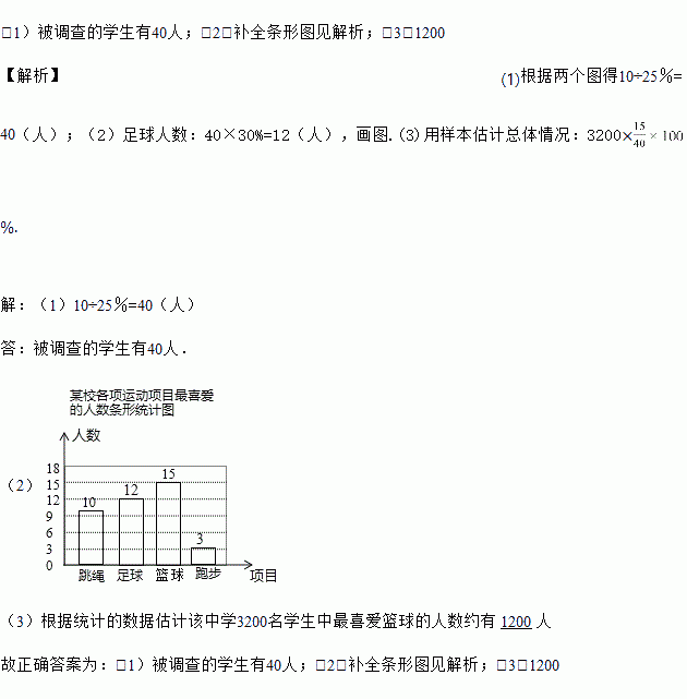 (3)根据统计的数据估计该中学3200名学生中最喜爱篮球的人数约有_____人.