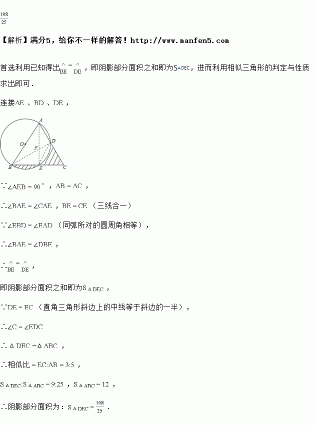 如图,在中,,,以为直径的圆交于,交于,求图中阴影部分的面积.