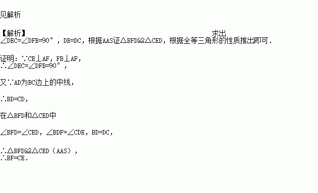 如图,在△ABC中,AD是BC边上的中线,分别过点C、B作射线AD的垂线段,垂足分别为E、F.求证:BF=CE.