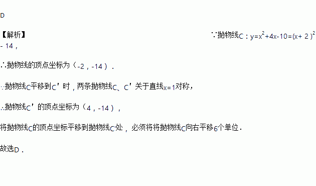 C. 将抛物线C向左平移6个单位 D. 将抛物线C向右平移6个单位