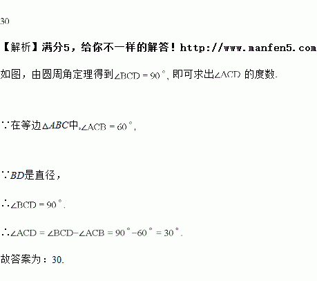 如图,等边三角形的顶点都在上,是直径,则________°.