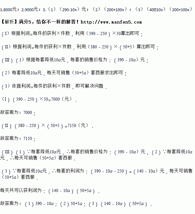 Ⅲ、如果每套销售价降低10元,每天就多销售5套,每套销售价降低20元,每天就多销售10套,每套销售价降低30元,每天就多销售15套…