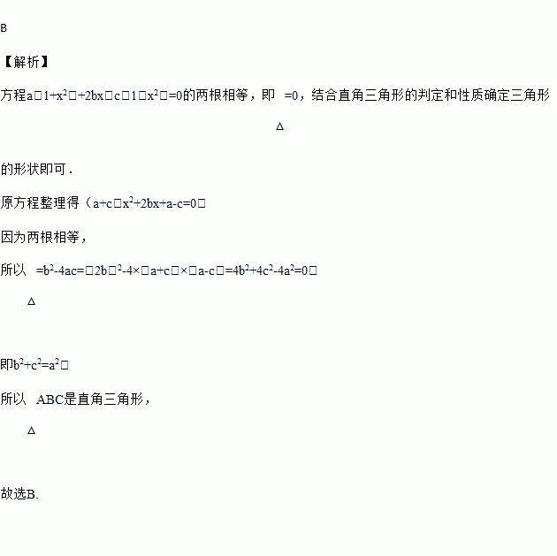 已知a、b、c是△ABC的三边长,且方程a(1+x2)+2bx﹣c(1﹣x2)=0的两根相等,则△ABC为( )