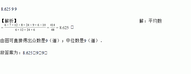 数学老师布置了10道选择题,小颖将全班同学的解答情况绘成了下面的条形统计图,根据图表回答:平均每个学生做对了_____道题,做对题目的众数是_____,中位数是_____.