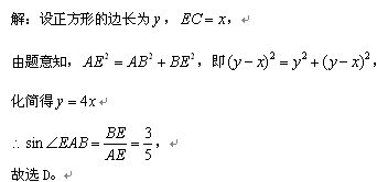 正方形ABCD中,E是BC边上一点,以E为圆心、EC为半径的半圆与以A为圆心,AB为半径的圆弧外切,则sin∠EAB的值为( )