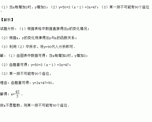 (3)按照上表所示的规律,某一排可能有90个座位吗?说说你的理由.