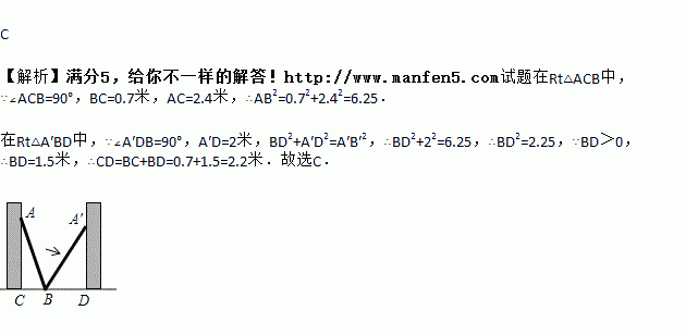 A. 0.7米 B. 1.5米 C. 2.2米 D. 2.4米