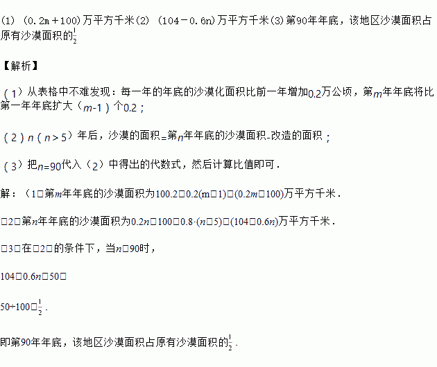(3)在(2)的条件下,第90年年底,该地区沙漠面积占原有沙漠面积的多少?