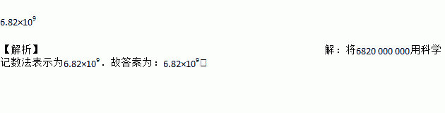 6.82×109 【解析】【解析】 将6820 000 000用科学记数法表示为6.82×109.故答案为:6.82×109.