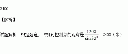 某飞机如果在1200米的上空测得地面控制点的俯角为30°,那么此时飞机离控制点之间的距离是 米.