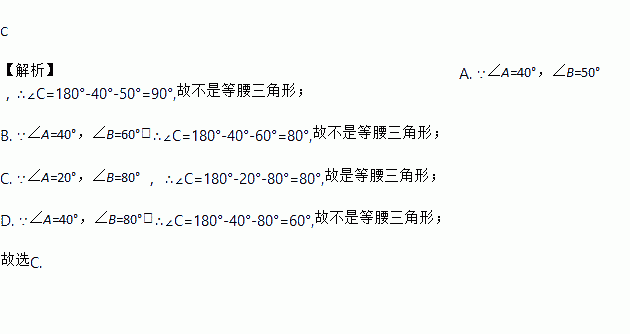 在△ABC中,其两个内角如下,则能判定△ABC为等腰三角形的是( )