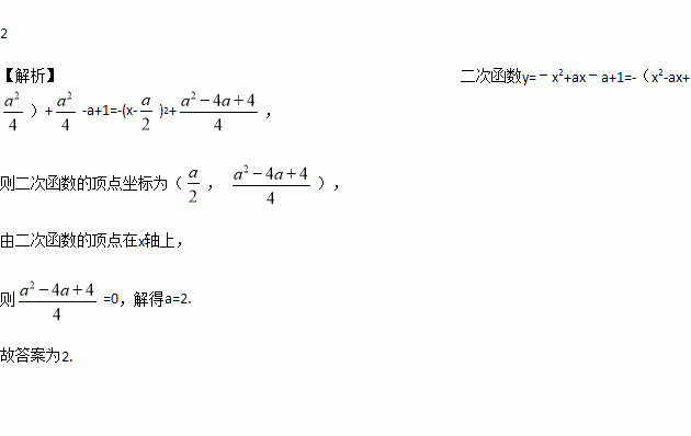 已知二次函数y=﹣x2+ax﹣a+1的图象顶点在x轴上,则a=_____________.