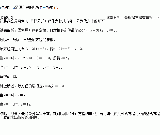 若关于x的方程有增根,则增根是多少?并求方程产生增根时m的值.