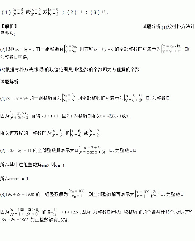 (2)方程的全部整数解表示为: ![]()