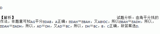 A. AG平分∠DAB B. AD=DH C. DH=BC D. CH=DH