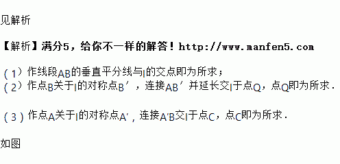 如图,直线l及A、B两点(保留作图痕迹,不写作法)。
