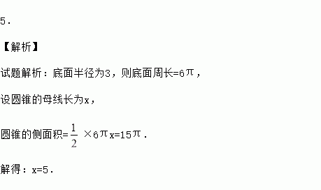 一圆锥的侧面积为,底面半径为3,则该圆锥的母线长为 .