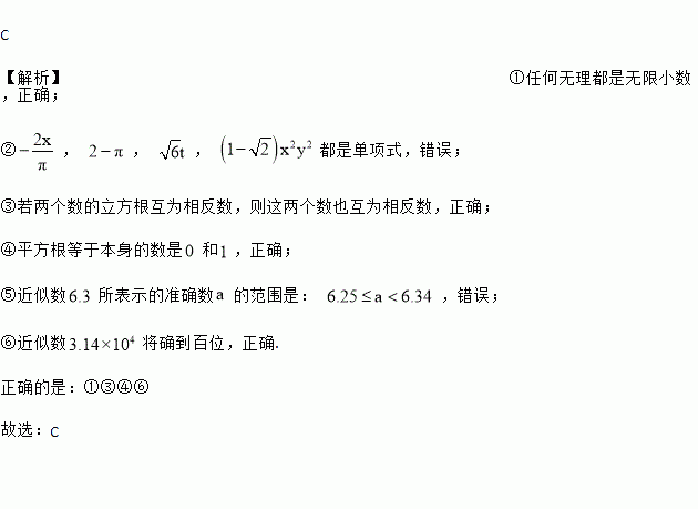 都是单项式;③若两个数的立方根互为相反数,则这两个数也互为相反数;④平方根等于本身的数是
