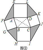 以?ABCD的四条边为边,在其形外分别作正方形,如图②,连接EF、GH、IJ、KL.若图中阴影部分四个三角形的面积和为12,则?ABCD的面积为________.