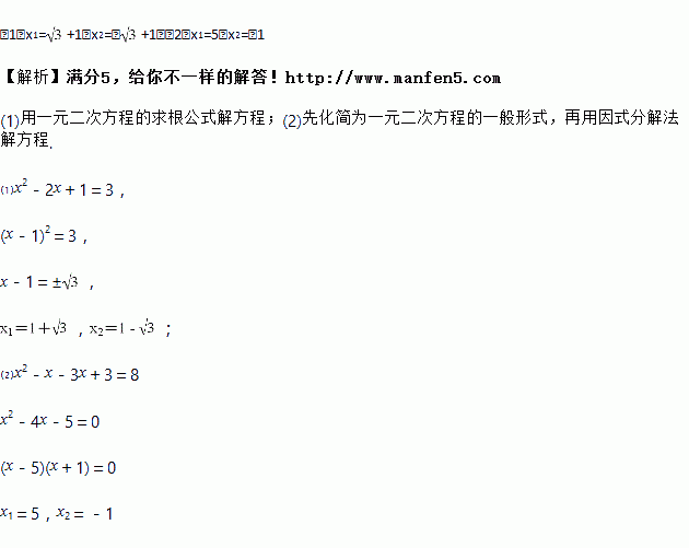 (2)(x﹣1)(x﹣3)=8.