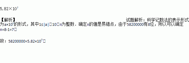 随着中国综合国力的提升,近年来全球学习汉语的人数不断增加.据报道2017年海外学习汉语的学生人数已达58200000人,用科学记数法表示为_________人.