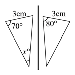 如图,两个三角形关于某直线成轴对称,已知其中某些边的长度和某些角的度数,则__________;