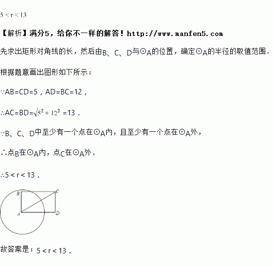 以矩形的顶点为圆心作,要使、、三点中至少有一点在内,且至少有一点在外,如果,,则的半径的取值范围为________.