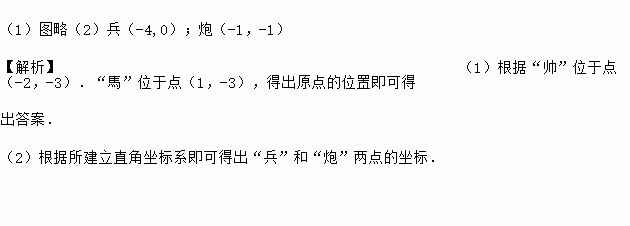 (2)分别写出“兵”和“炮”两点位于你所建立的平面直角坐标系的坐标。