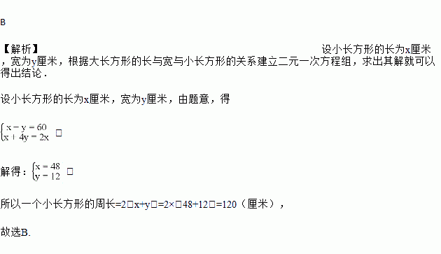 如图,宽为60cm的矩形图案由10个完全一样的小长方形拼成,则其中一个小长方形的周长为( )