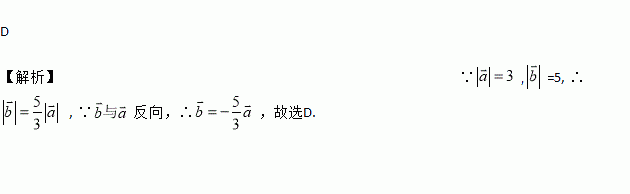 已知=3, =5,且与的方向相反,用表示向量为( )
