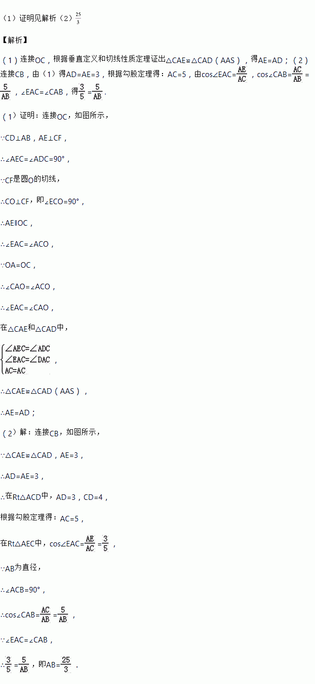 (2)若AE=3,CD=4,求AB的长.