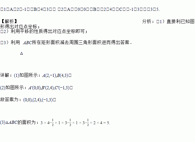 (2)将△ABC先向左平移2个单位长度,再向上平移1个单位长度,得到△A'B'C',则△A'B'C'的三个顶点坐标分别是A'( , )、B'( 、 )、 C'( 、 )