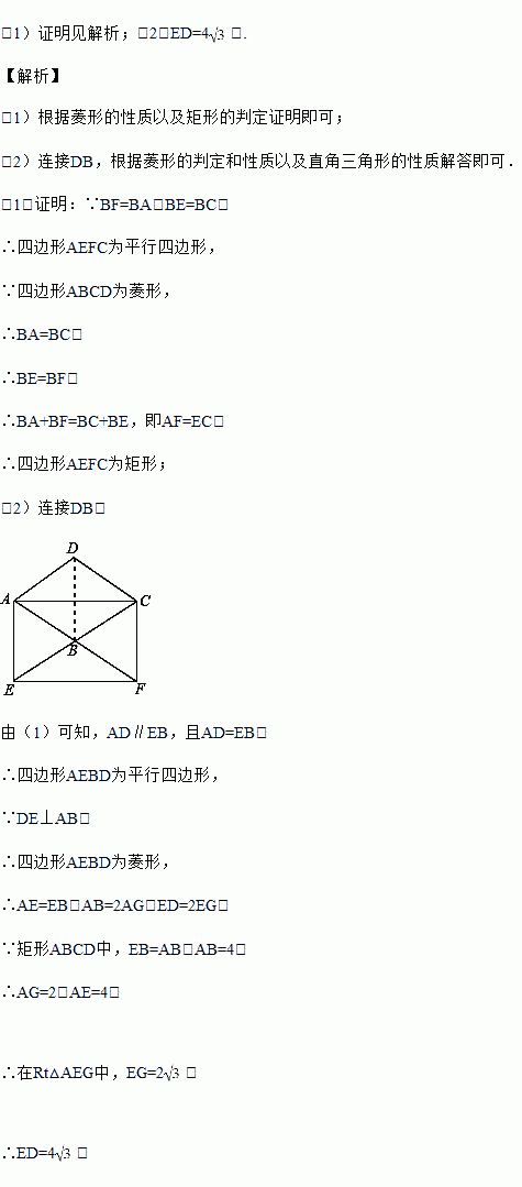 已知:如图,菱形ABCD,分别延长AB,CB到点F,E,使得BF=BA,BE=BC,连接AE,EF,FC,CA.