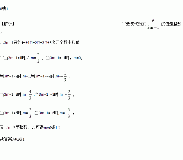 当m为整数,代数式的值也是整数时,m的值为_________