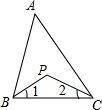 x)°,再根据三角形内角和定理可得∠P+∠1+∠2=180°,把∠1+∠2的值代入即可算出∠BPC的度数.