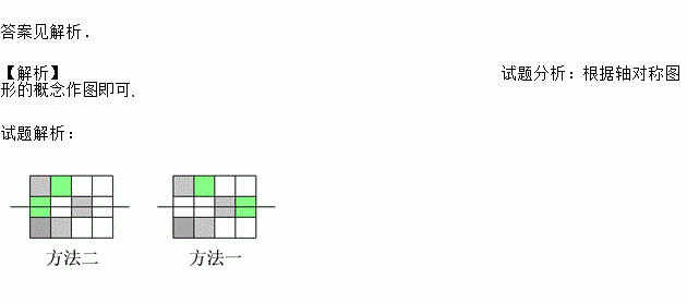 如图,在4×3的正方形网格中,阴影部分是由4个正方形组成的一个图形,请你用两种方法分别在下图方格内添涂2个小正方形,使这6个小正方形组成的图形是轴对称图形,并画出其对称轴.