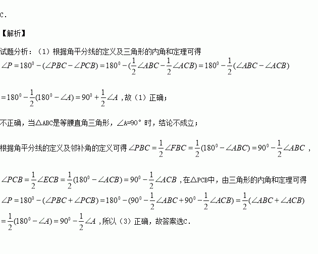 (1)如图1,若P点是∠ABC和∠ACB的角平分线的交点,则∠P=90°+