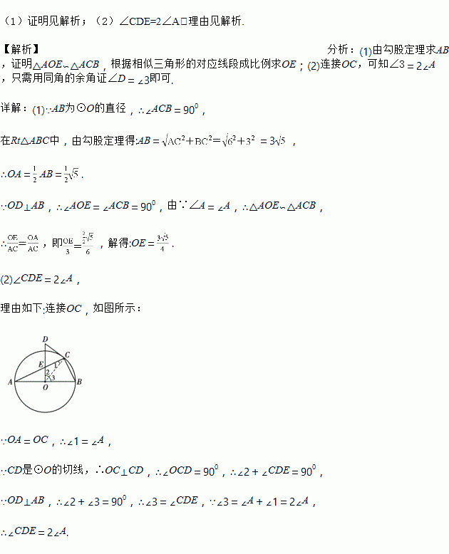 (2)试判断∠A与∠CDE的数量关系,并说明理由.