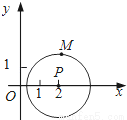 如图,以点P(2,0)为圆心, 为半径作圆,点M(a,b)是⊙P上的一点,则的最大值是________ .