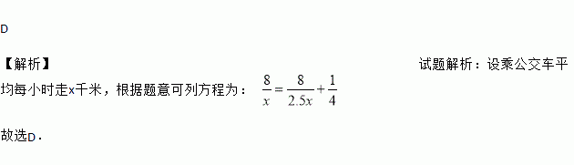 随着生活水平的提高,小林家购置了私家车,这样他乘坐私家车上学比乘坐公交车上学所需的时间少用了15分钟,现已知小林家距学校8千米,乘私家车平均速度是乘公交车平均速度的2.5倍,若设乘公交车平均每小时走x千米,根据题意可列方程为( )