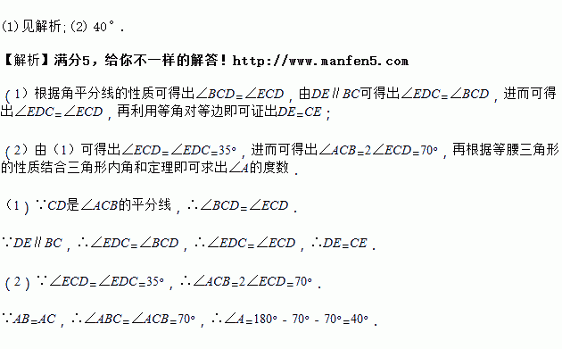 如图,在△ABC 中,AB=AC,CD是∠ACB的平分线,DE∥BC,交AC于点 E.