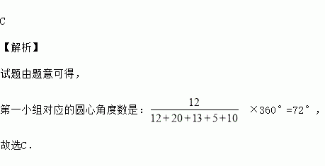 九年级(2)班同学根据兴趣分成五个小组,各小组人数分布如图所示,则在扇形图中第一小组对应的圆心角度数是( )