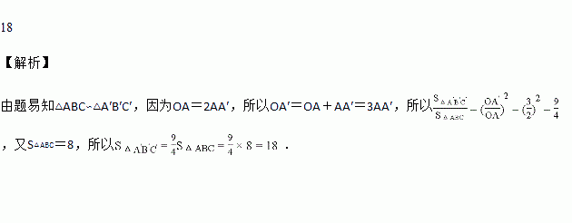 如图,△ABC与△A'B'C'是位似图形,点O是位似中心,若OA=2AA',S△ABC=8,则S△A'B'C'=___.