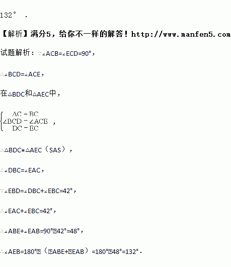 (题文)(题文)如图,AC=BC,DC=EC,∠ACB=∠ECD=90°,且∠EBD=42°,则∠AEB=_____.