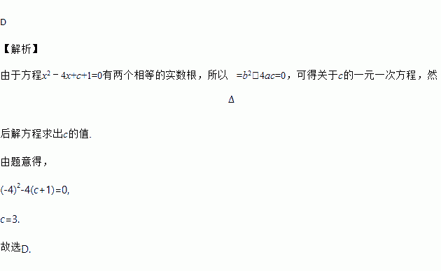 已知关于x的方程x2﹣4x+c+1=0有两个相等的实数根,则常数c的值为( )